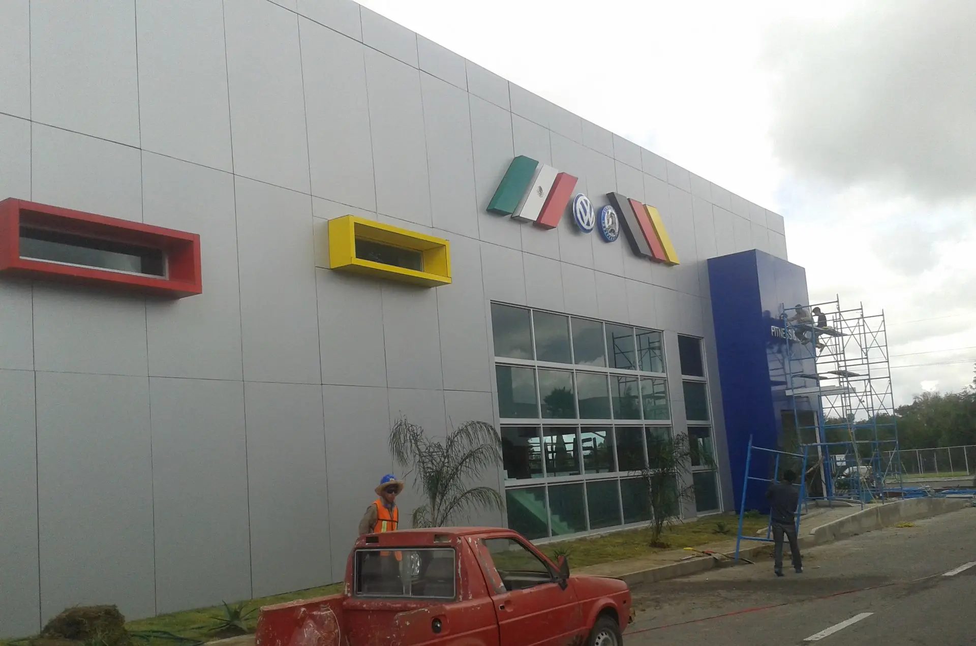 Uso del Panel Compuesto de Aluminio como fachada y elemento constructivo, es decir el panel funge como pared.